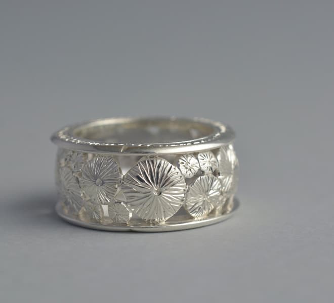 Desde 1990 me he formado en el oficio de la joyería junto a diversos maestros y maestras que han marcado profundamente mi camino. Cada uno ha influido en mi relación con las técnicas clásicas del oficio, aquellas que requieren tiempo, práctica y un desafío constante. Esta mirada ha forjado el carácter detallista de mi trabajo y mi búsqueda permanente por hacer que el oficio manifieste la relevancia del material, de modo que cada pieza pueda exteriorizar su ser y su sentido.